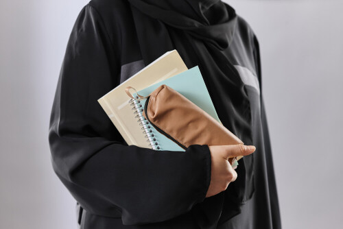 multi-colored pottery Plate placed on a small light colored straw placemat